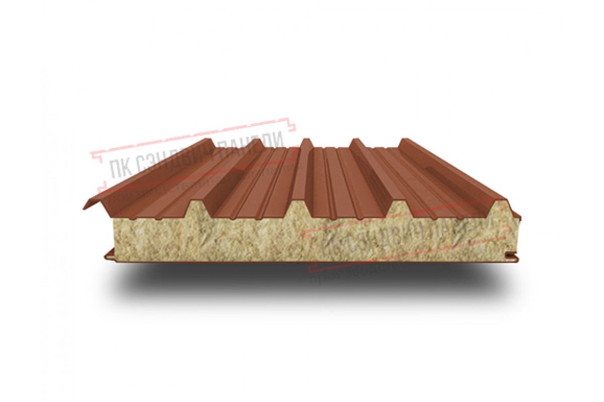 Купить сэндвич панели кровельные с минеральной ватой, ширина 1000 мм, толщина 20 мм, 0.5/0.5, RAL8004 недорого. Цены и характеристики на сайте. Сертифицировано.