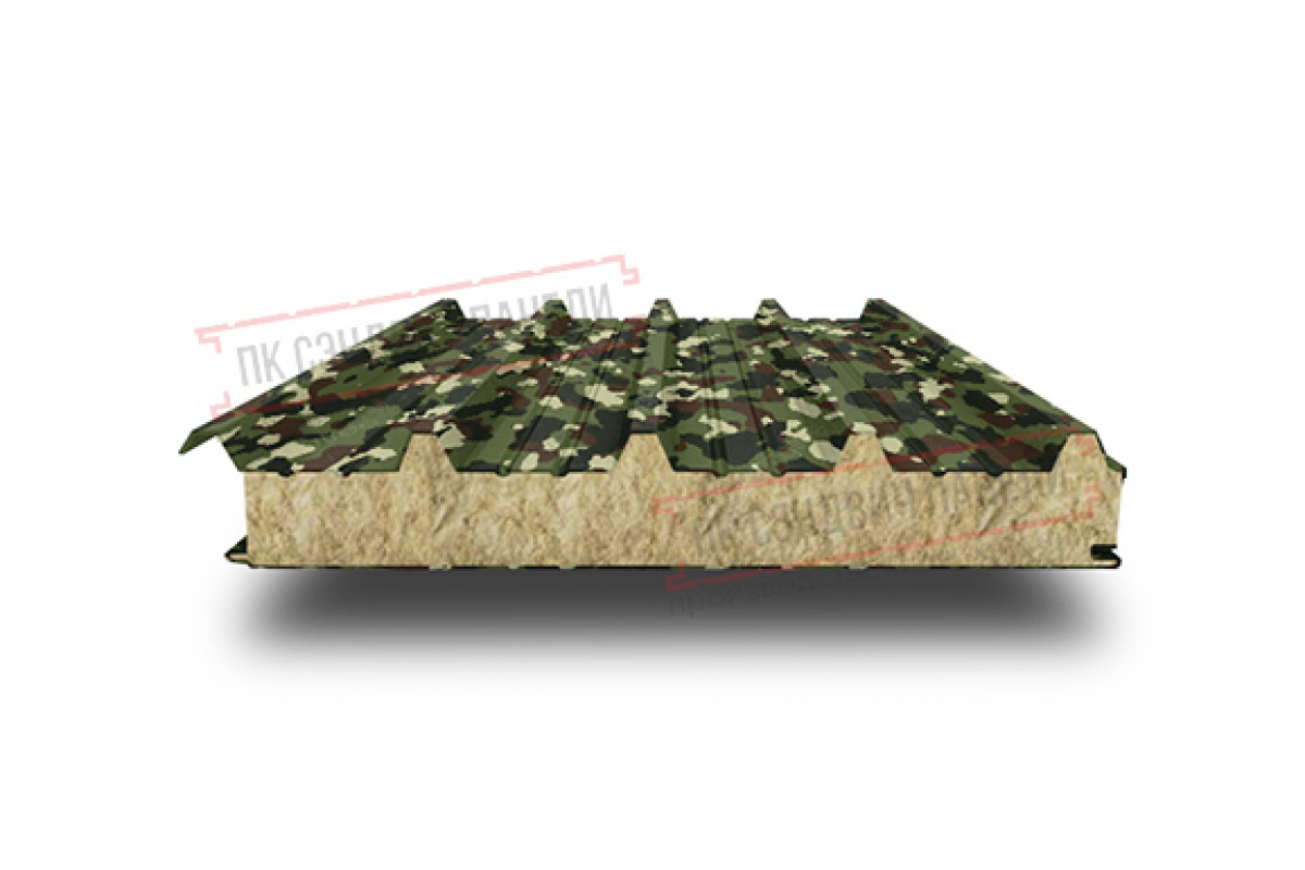 Купить сэндвич панели кровельные с минеральной ватой, ширина 1200 мм, толщина 20 мм, 0.5/0.5, милитари в любом объеме с удобной формой оплаты.