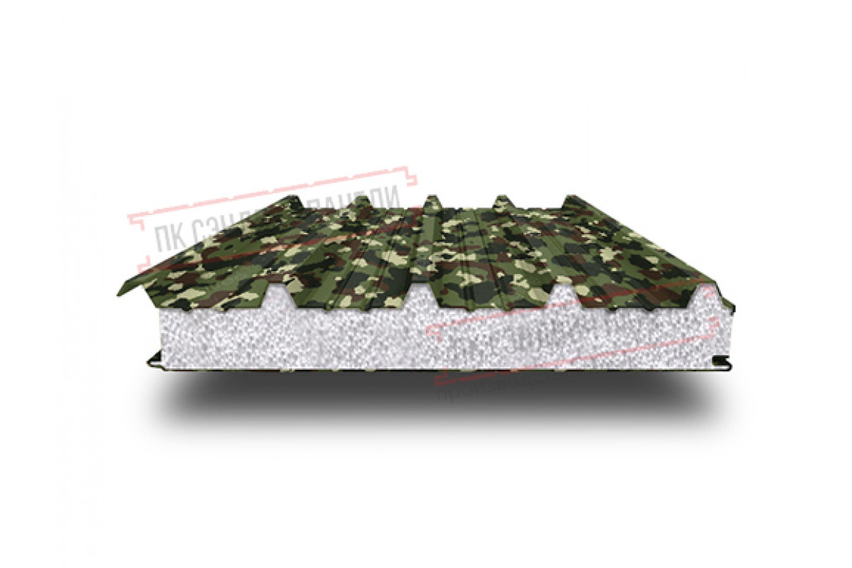 Купить сэндвич панели кровельные с пенополистиролом, ширина 1200 мм, толщина 30 мм, 0.5/0.5, милитари под заказ по индивидуальным размерам в любом объеме.