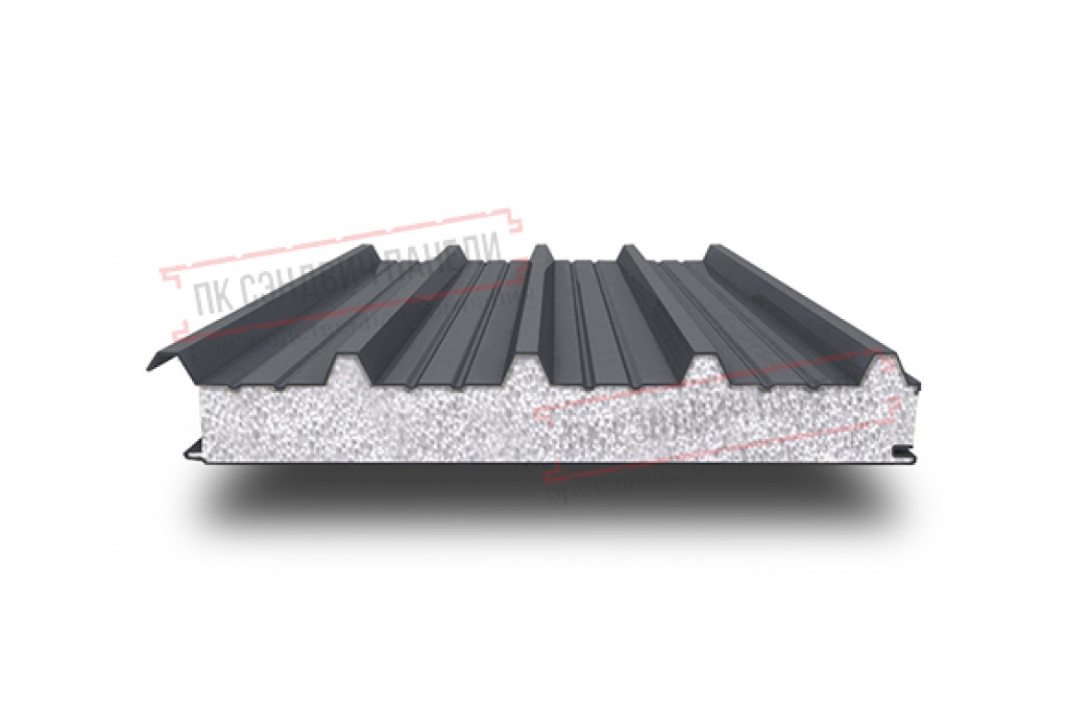 Купить сэндвич панели кровельные с пенополистиролом, ширина 1200 мм, толщина 30 мм, 0.5/0.5, RAL7024 недорого. Нижайшие цены! От производителя.