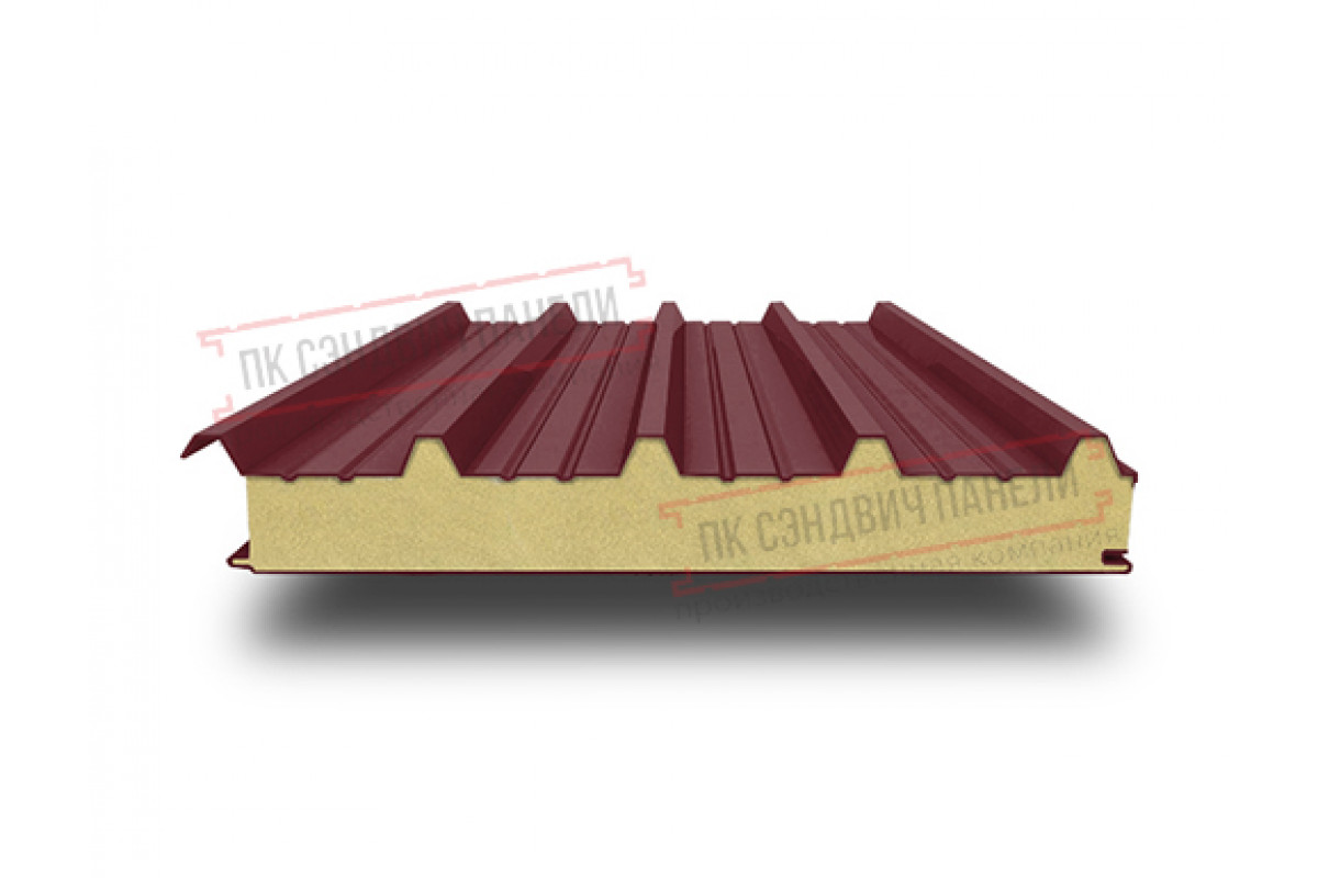Купить сэндвич панели кровельные с пенополиуретаном, ширина 1200 мм, толщина 30 мм, 0.5/0.5, RAL3005 недорого. Нижайшие цены! От производителя.