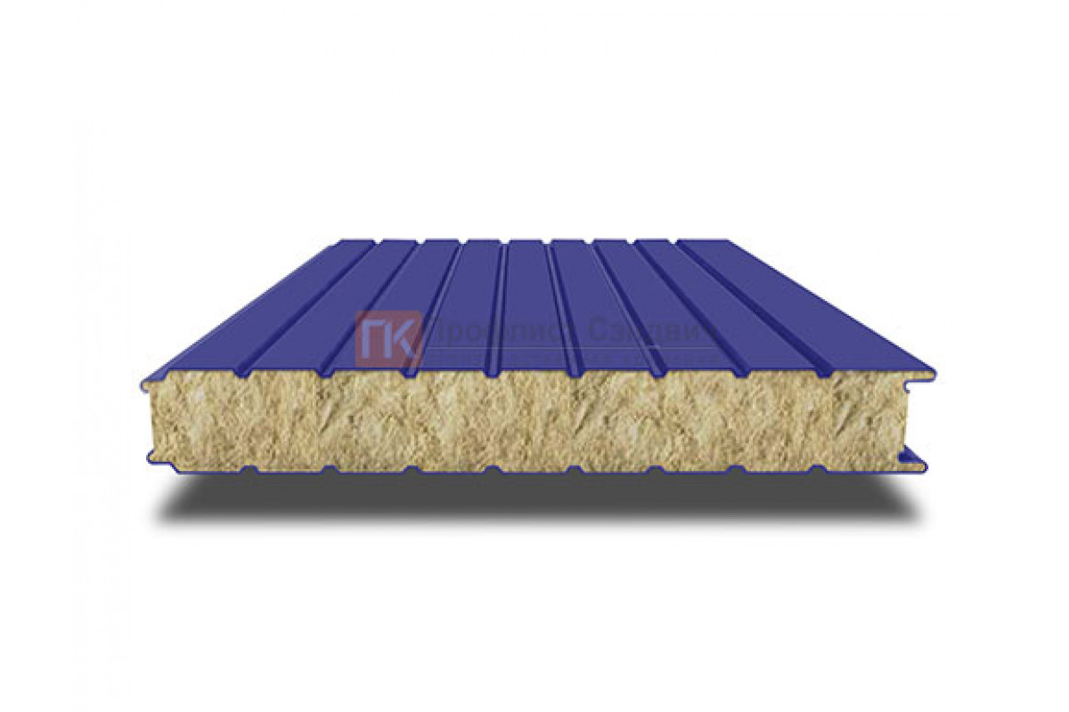 Купить сэндвич-панель для холодильных камер с минеральной ватой, ширина 1200 мм, толщина 100 мм, 0.5/0.5, RAL5002 в любом объеме с удобной формой оплаты.