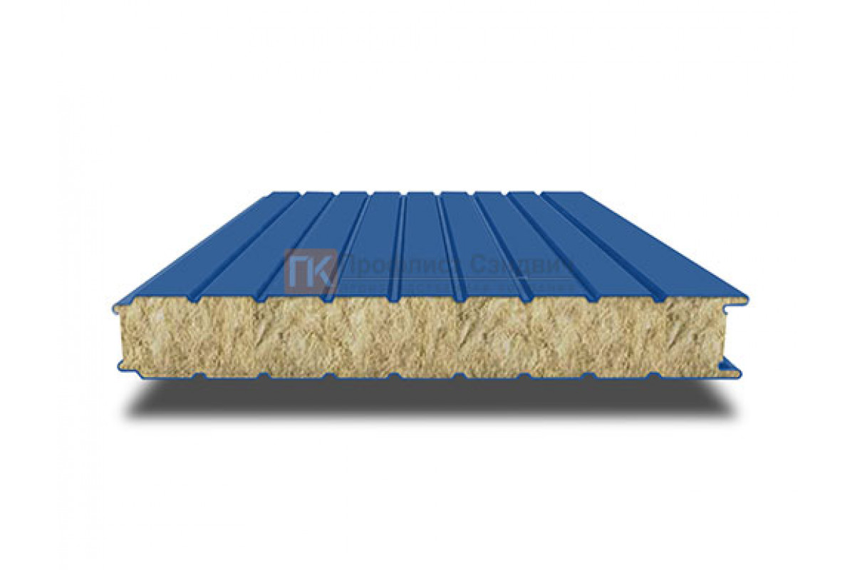 Купить сэндвич-панель для холодильных камер с минеральной ватой, ширина 1200 мм, толщина 100 мм, 0.5/0.5, RAL5005 недорого. Нижайшие цены! От производителя.