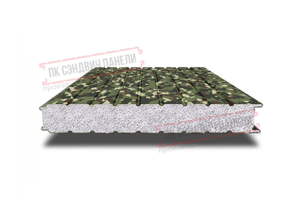 Купить сэндвич панели стеновые с пенополистиролом, ширина 1200 мм, толщина 10 мм, 0.5/0.5, милитари с гарантией качества оптом и в розницу.