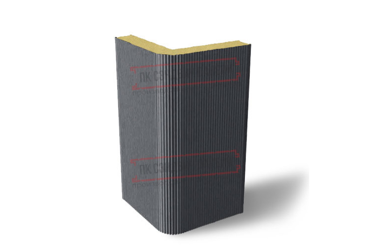Купить угловые сэндвич-панели вертикальная из пенополиизоцианурата, 0.5/0.5, ширина 1000 мм, толщина 30 мм, RAL7024 гарантированно по доступной цене с любой формой оплаты.
